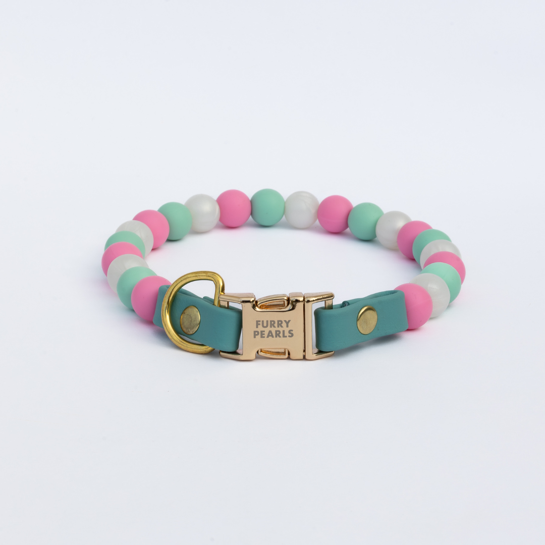 Furry Pearls collars are handmade with care, but are built to withstand the lifestyles of beach babes and adventure-holics. Our collars are water resistant, and feature;